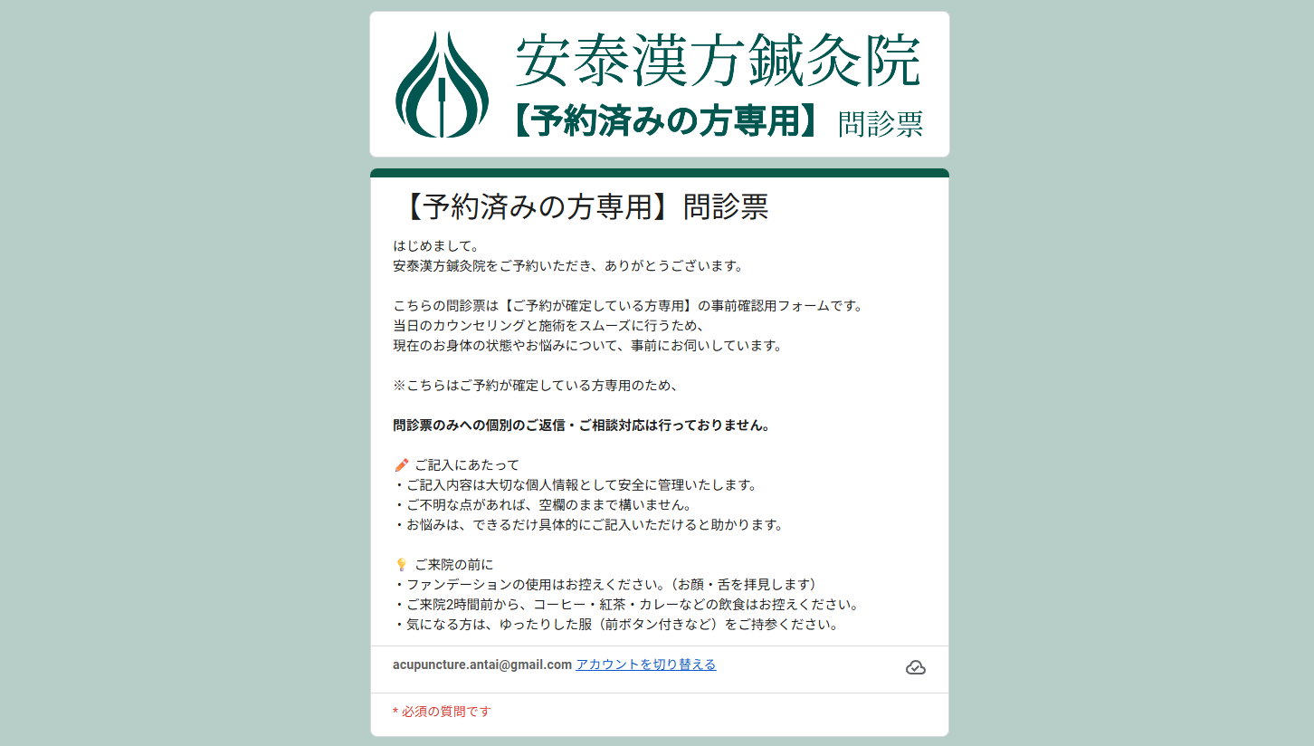 ご予約後、来院前にWEB問診の入力をお願いしています。